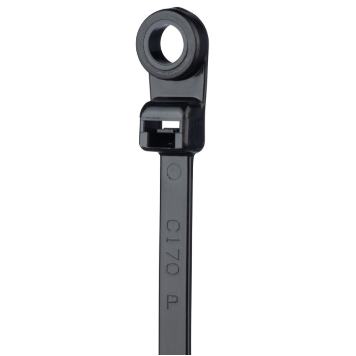Der Kabelbinder mit Befestigungsöse wird dann verwendet, wenn Kabelbündel an einer Oberfläche wie beispielsweise Bedienfeld, Wand oder Decke befestigt werden muss. Der Kabelbinder kann vor oder nach dem Bündeln der Kabel mit Hilfe einer Schraube an einer beliebigen Oberfläche angeschraubt werden. Abhängig vom Verwendungszweck, kommt der Kabelbinder in drei unterschiedlichen Materialen und ist so passend für Innen- oder Aussenanwendungen: