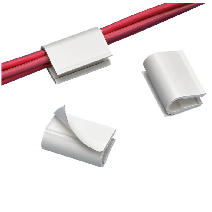 Selbstklebender Clip mit sehr geringer Bauhöhe. Die praktische Einführungslippe erlaubt ein leichtes Einlegen von Kabeln - ohne Isolationsbeschädigung.